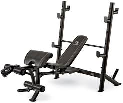 Marcy mid size weight bench. The device is equipped with heavy duty 3 inch round steel uprights to hold the weight bar with a 40 inch crutch width that accommodates both 6 foot and 7 foot bars. Marcy flat utility 600 lbs capacity weight bench for weight training and ab exer. Over sized uprights bar safety catches that can hold any olympic bar two olympic weight plate storage posts for easy organization and plate changes a leg developer for bulking up the lower body and an adjustable back pad that offers the user the ability to train in incline and flat.