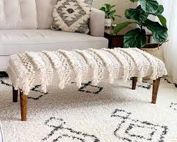 This bench can accommodate two people on it with ease. Use traditional moroccan lanterns decorate your walls with plates or baskets and don t forget potted. Upholstered in a linen like fabric the bench is accented with designer details such as silver nailhead and a beautiful moroccan quatrefoil pattern.